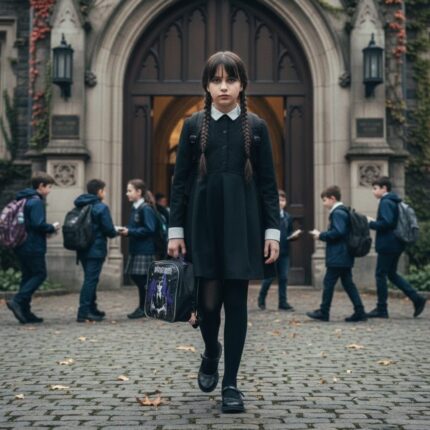 Mochila com Rodinha Wandinha Addams (Wednesday) com Chaveiro Exclusivo da Mãozinha – MGM Prepare-se para dominar os corredores da escola