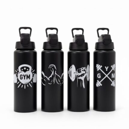 Garrafa de Alumínio Preta com Estampa de Academia 1L – Amigold