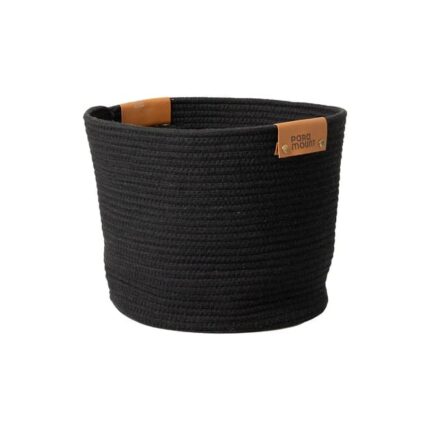 Cesto de Fibra Natural bicolor com Alça de Couro