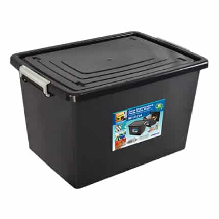 Caixa Organizadora Preta com Trava Prata – 56 litros