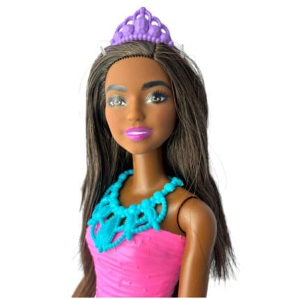 As bonecas Barbie Princesa Dreamtopia Negra são conhecidas por seus vestidos vibrantes e acessórios brilhantes, perfeitos para estimular a imaginação das crianças.