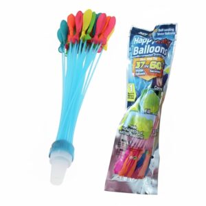 O Kit Happy Baby Balloons transforma a maneira como você prepara brincadeiras com água. O conjunto contém 37 bexigas de látex pré-conectadas a um sistema de enchimento rápido. Basta conectar o bocal a uma mangueira de jardim ou torneira, abrir a água e observar as 37 bexigas encherem simultaneamente.