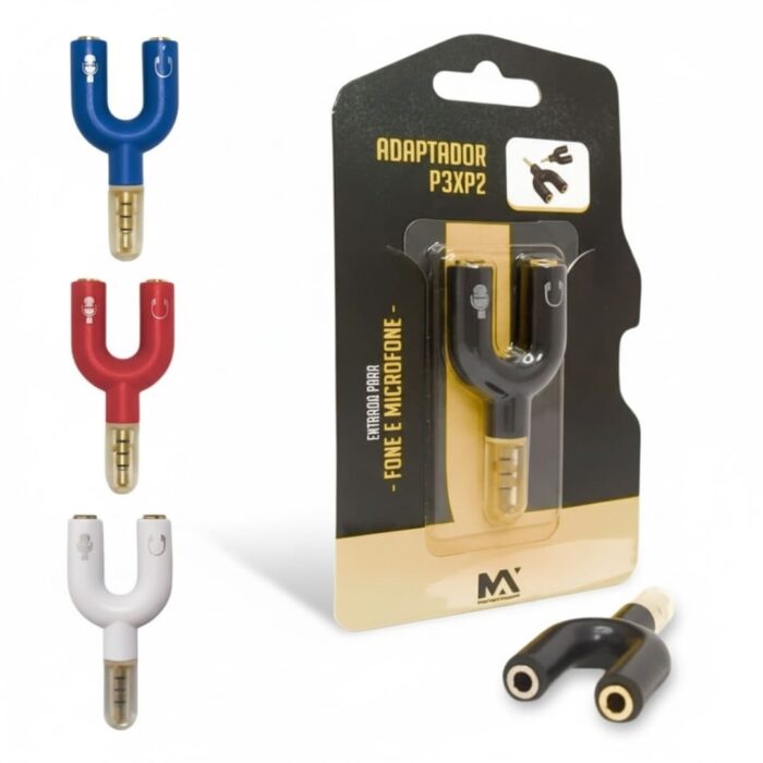 O Adaptador para Microfone e Fone P3xP2 MAX-ADP3 da MaxMidea é a solução indispensável para quem utiliza notebooks, smartphones ou consoles (como o PS4) que possuem apenas uma entrada de áudio do tipo P3 (combina fone de ouvido e microfone em um único conector – TRRS).