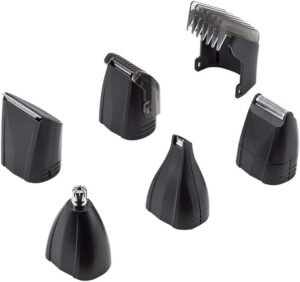 • Máxima Versatilidade (7 em 1): Alterne entre os 5 aparadores específicos para cada necessidade: corte de cabelo, aparador de barba, aparador de precisão para contornos, aparador de pelos do nariz/ouvido e barbeador rente à pele.