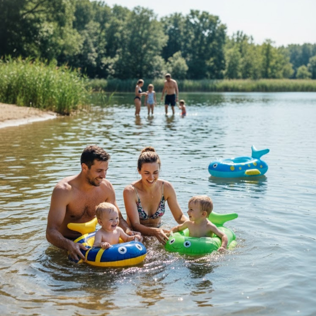Design Lúdico: O formato de bichinho, com cores vibrantes e detalhes chamativos, é altamente atrativo para crianças, estimulando a imaginação e tornando a adaptação à água mais divertida.
