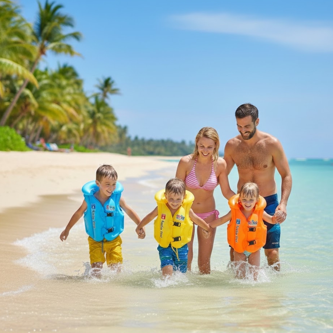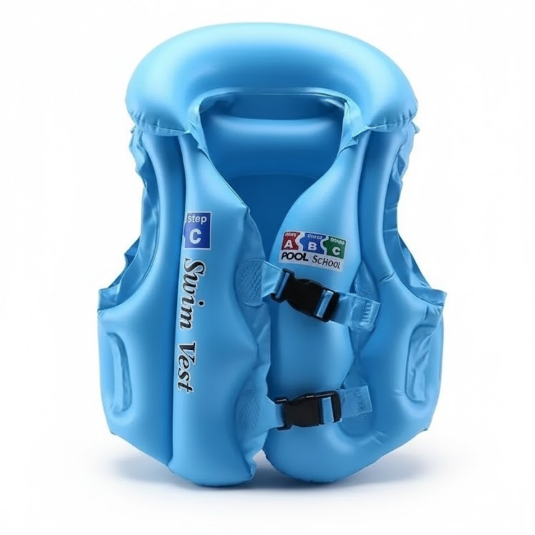 Material e Construção: Fabricado em PVC inflável de alta qualidade e durabilidade. Muitos modelos de coletes de segurança utilizam câmaras de ar independentes para maior segurança (se uma furar, a outra ainda sustenta), além de fivelas ou tiras ajustáveis para garantir um ajuste firme e seguro no corpo da criança.