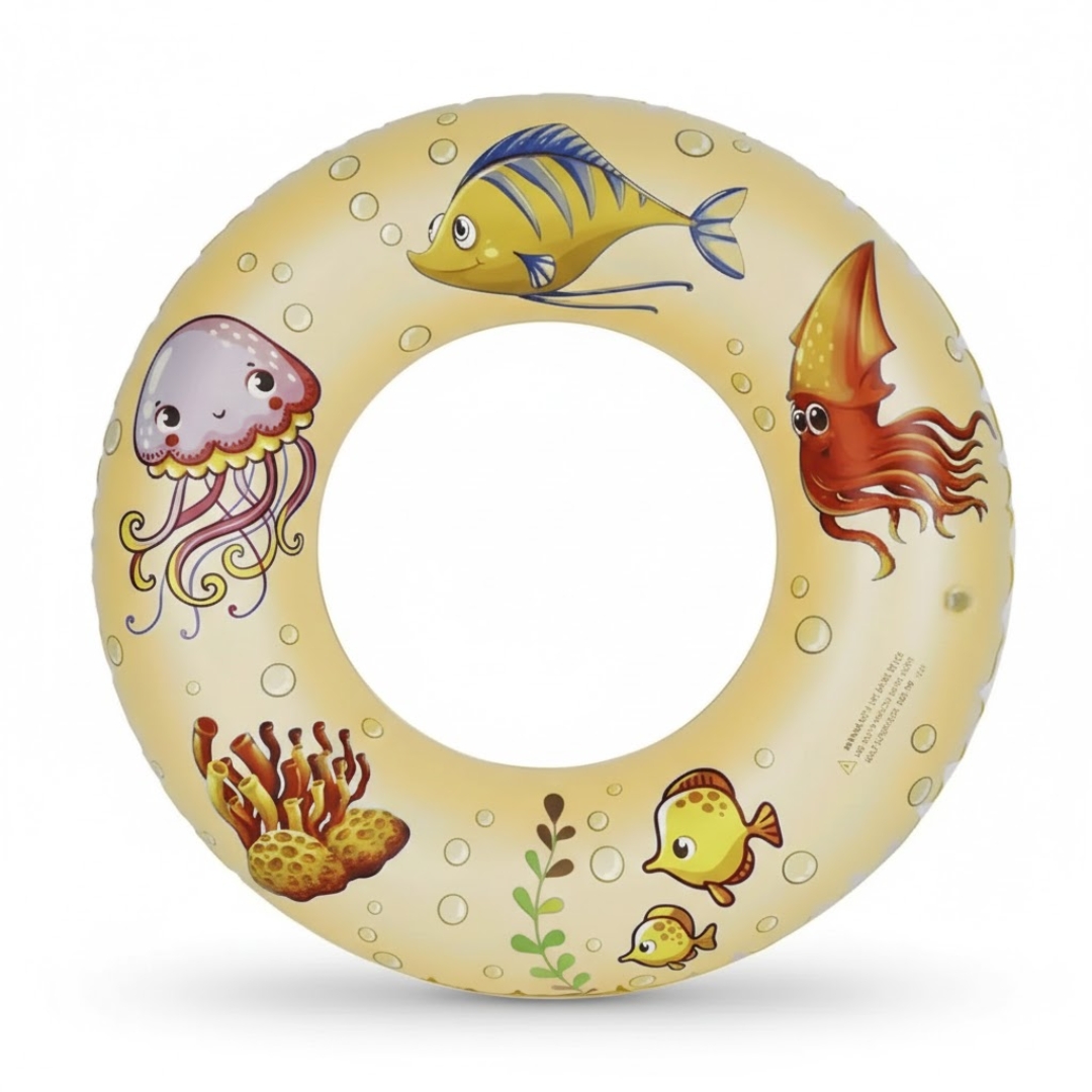 Diâmetro Intermediário: Com 70 centímetros de diâmetro, esta bóia é dimensionada para ser o tamanho perfeito para o público infantil mais velho e adolescente, oferecendo um ajuste confortável e um bom nível de suporte na água.