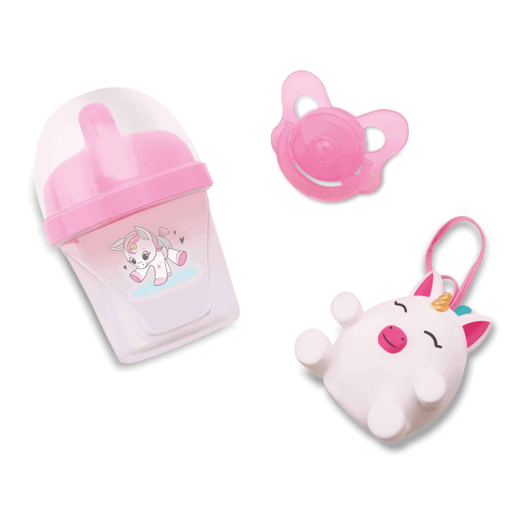 • Características adicionais: Pode incluir acessórios como chupeta, garrafinha ou fraldinha, dependendo da versão do produto.