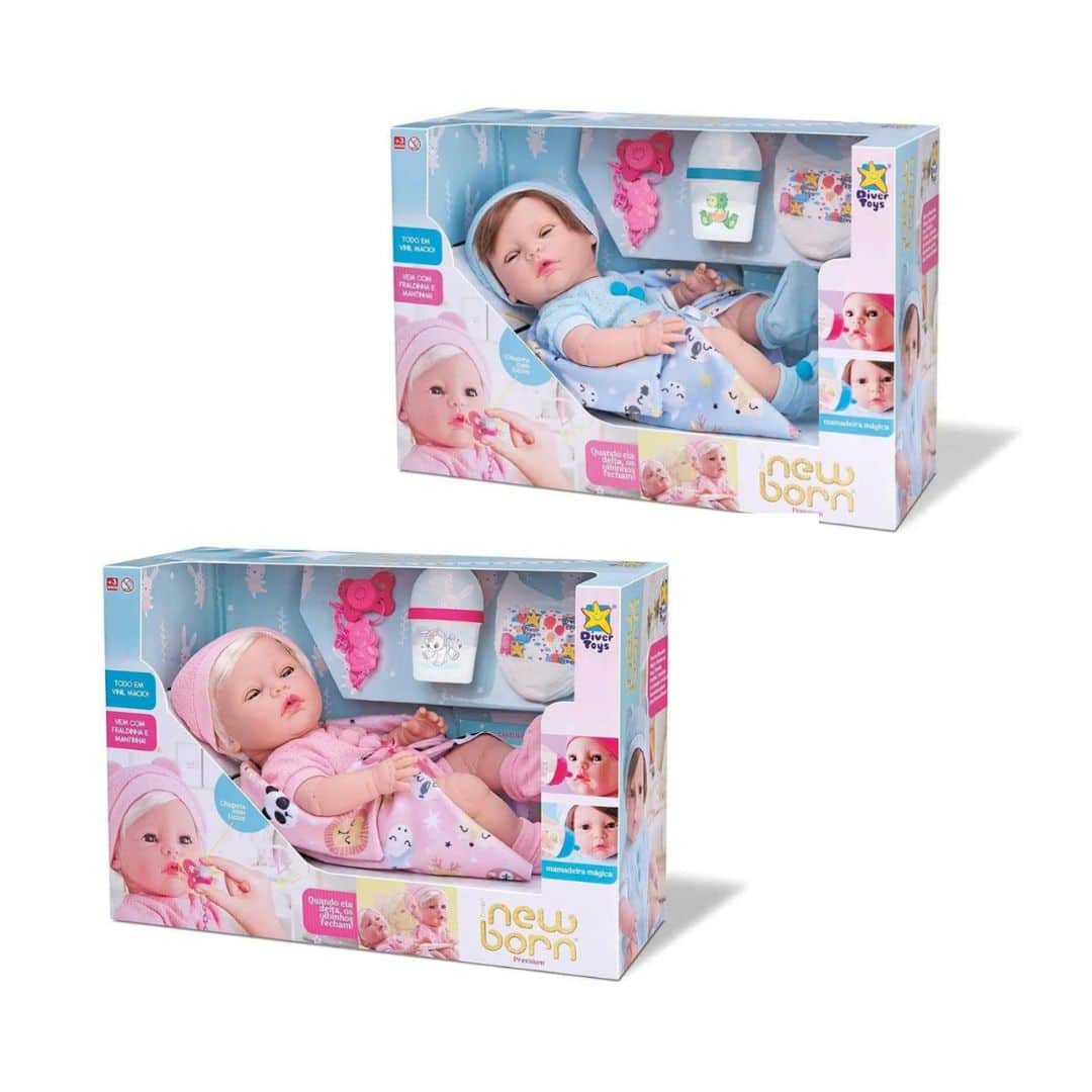 A boneca Premium Diver New Born da Divertoys é uma boneca de alta qualidade projetada para proporcionar uma experiência realista de cuidado com um bebê recém-nascido.