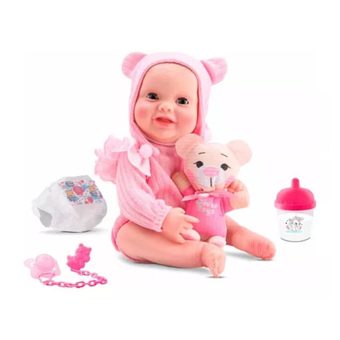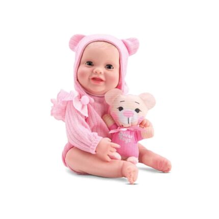 • A boneca pode vir com acessórios que complementam a experiência de jogo, como uma chupeta, uma mantinha ou uma mamadeira.