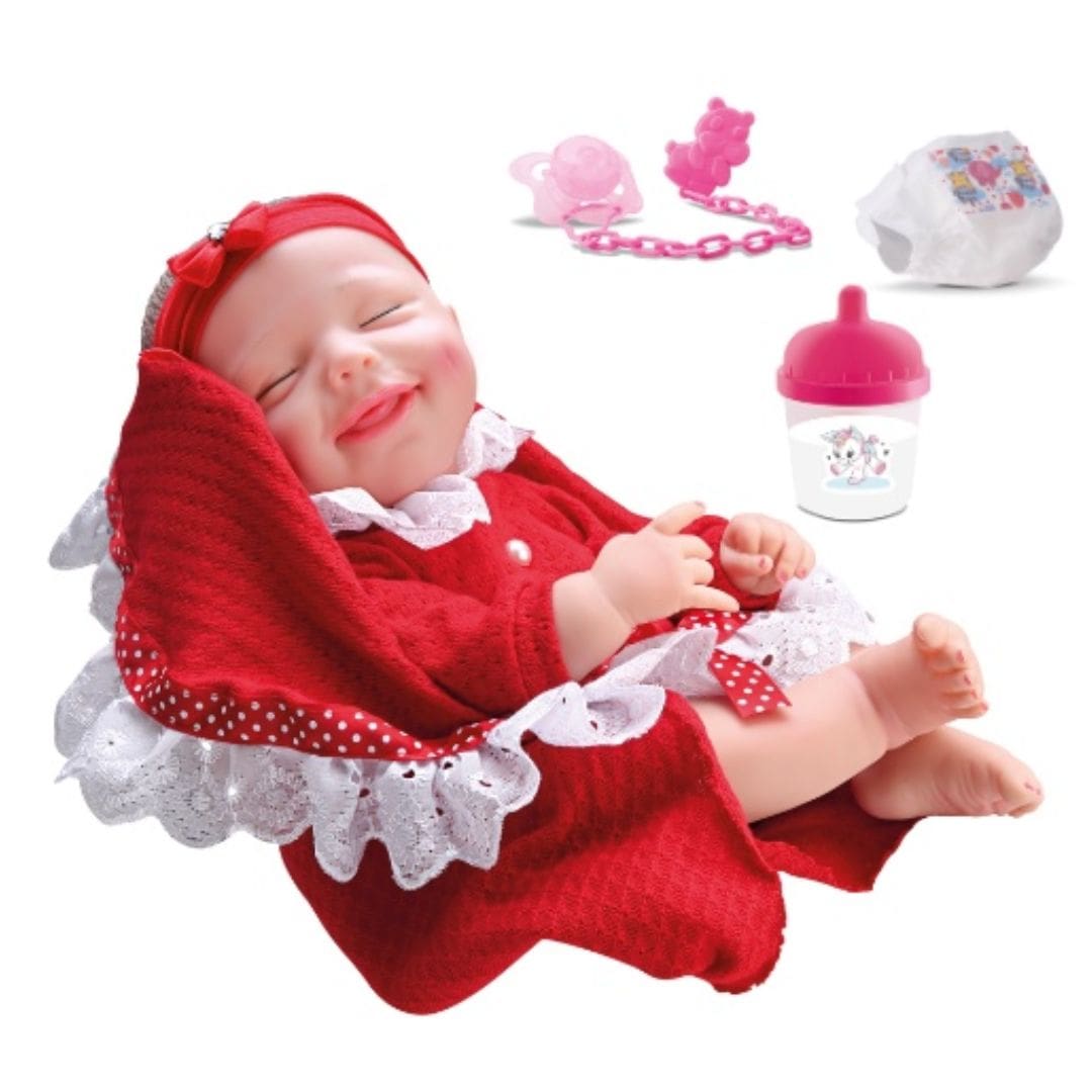 • A boneca é projetada para imitar as feições e proporções de um bebê recém-nascido, com uma expressão facial delicada e realista.