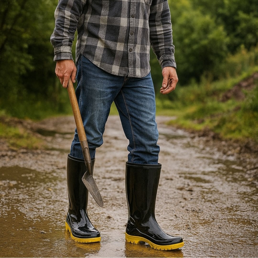 Agricultura e Pecuária: Proteção contra lama, água e dejetos, essencial para o manejo do gado e trabalho em lavouras.