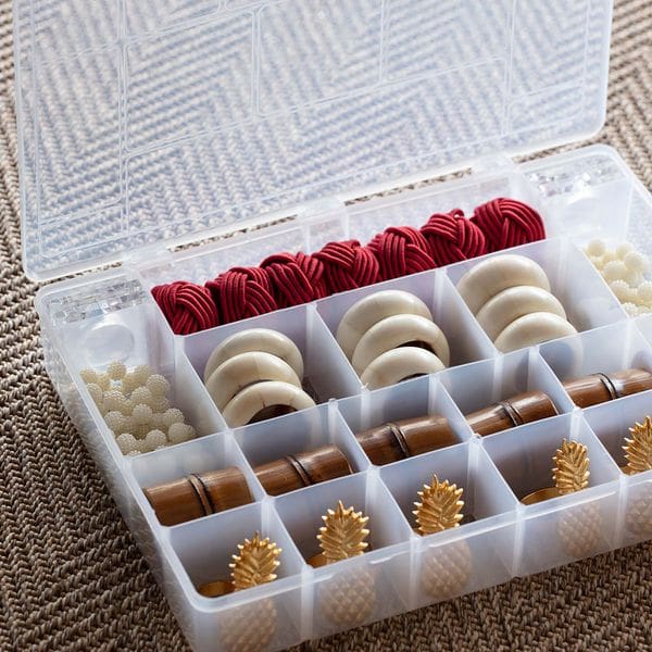 - Caixas organizadoras com divisórias: Perfeitas para organizar pequenos objetos, como joias, bijuterias e acessórios.