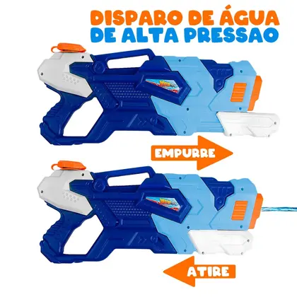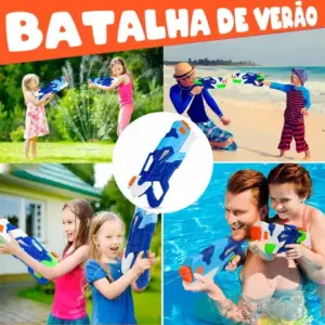 Design e Material: O design é robusto, no estilo “bazuca”, e é construído em plástico resistente e durável (próprio para uso aquático e externo).