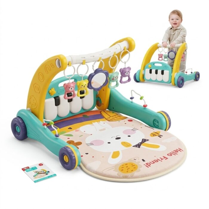 À medida que o bebê cresce, o brinquedo se transforma em um andador (walker) robusto e seguro. A estrutura auxilia no equilíbrio e na confiança necessária para os primeiros passos, enquanto o painel musical continua disponível para momentos de pausa e diversão. Com cores vibrantes e texturas variadas, este centro 2 em 1 é um investimento no desenvolvimento cognitivo e físico, garantindo entretenimento educativo por muito mais tempo.