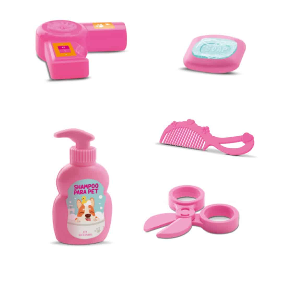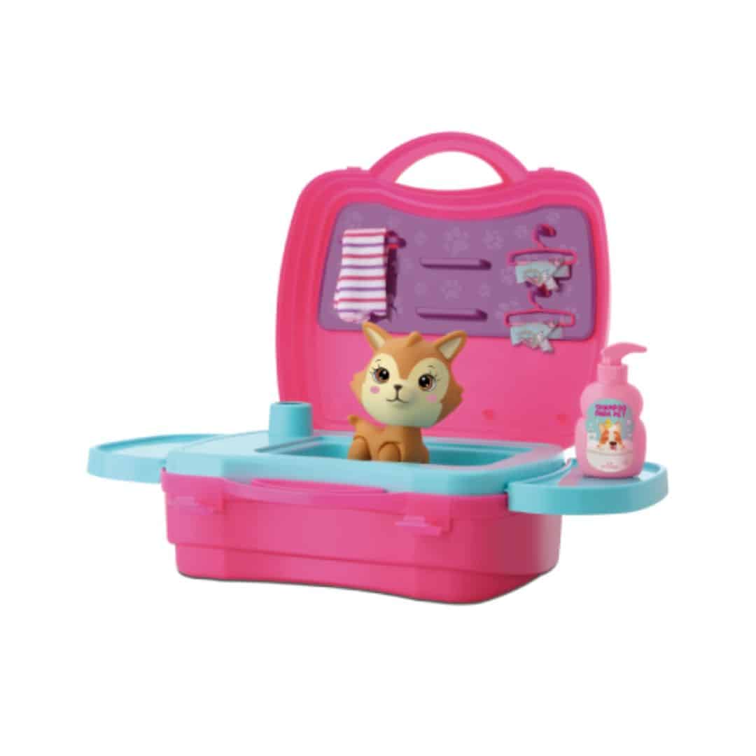 Este brinquedo é ideal para crianças que gostam de simular atividades de cuidados com animais, incentivando o jogo simbólico e o aprendizado através da brincadeira.