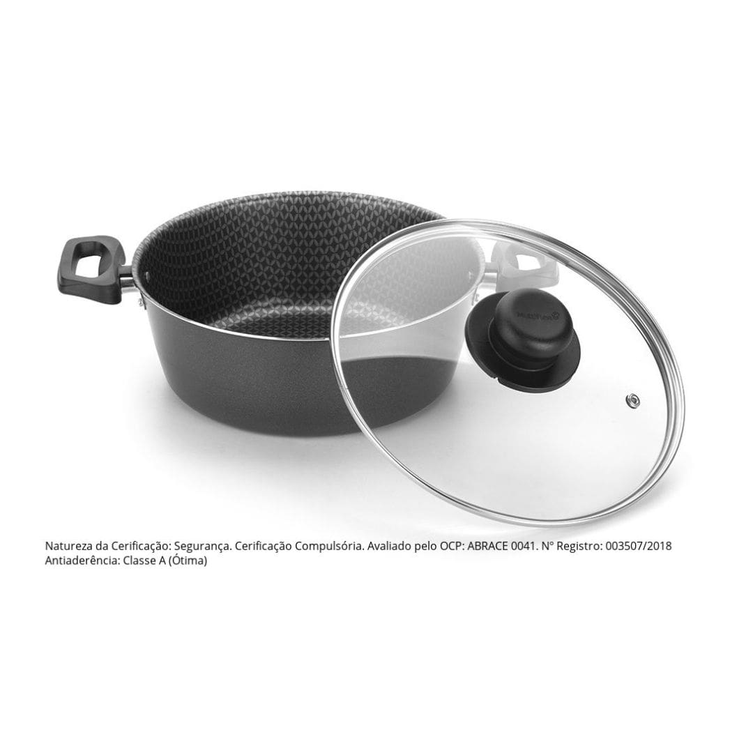 Caçarola de Alumínio com Revestimento Antiaderente e Tampa de Vidro Nº24 Linha Essencial – Multiflon