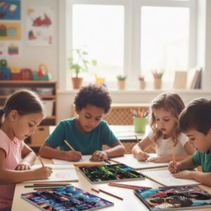 Capa: Capa Dura e robusta, que protege as folhas internas e serve como suporte firme para desenhar.