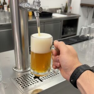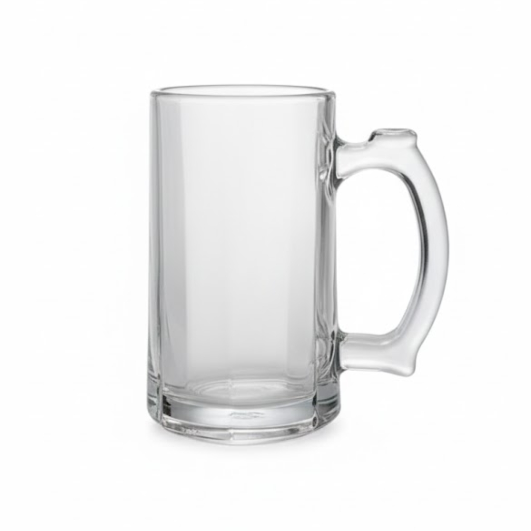 Fabricada em vidro transparente e de alta espessura, a caneca ajuda a manter a temperatura da bebida por mais tempo, especialmente se previamente resfriada. A transparência do vidro permite apreciar a cor e a efervescência da cerveja.