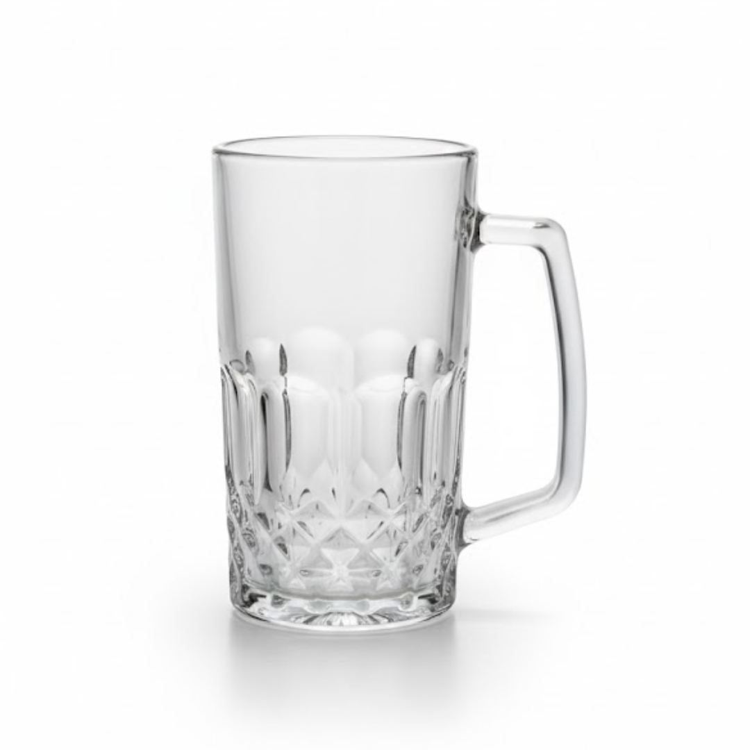 Fabricada em vidro de alta qualidade e transparência, permite que o usuário desfrute da cor dourada e do colarinho da cerveja. A caneca possui uma alça lateral grande e resistente, que proporciona um agarre confortável e seguro, mesmo quando cheia, prevenindo que o calor da mão interfira na temperatura do chopp.