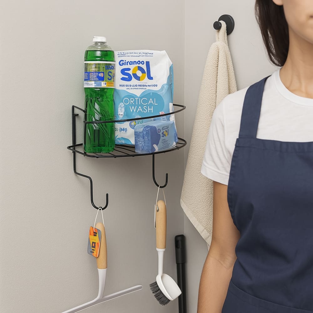 Fabricada com aço carbono de alta qualidade e acabamento em pintura epóxi branca, a cantoneira Azzo garante durabilidade, resistência à umidade e facilidade de limpeza. Seu design aramado permite a ventilação, evitando o acúmulo de água e prolongando a vida útil dos produtos armazenados. Com um prático gancho integrado, você pode pendurar buchas, toalhas, escovas e outros acessórios, mantendo tudo ao alcance das mãos.