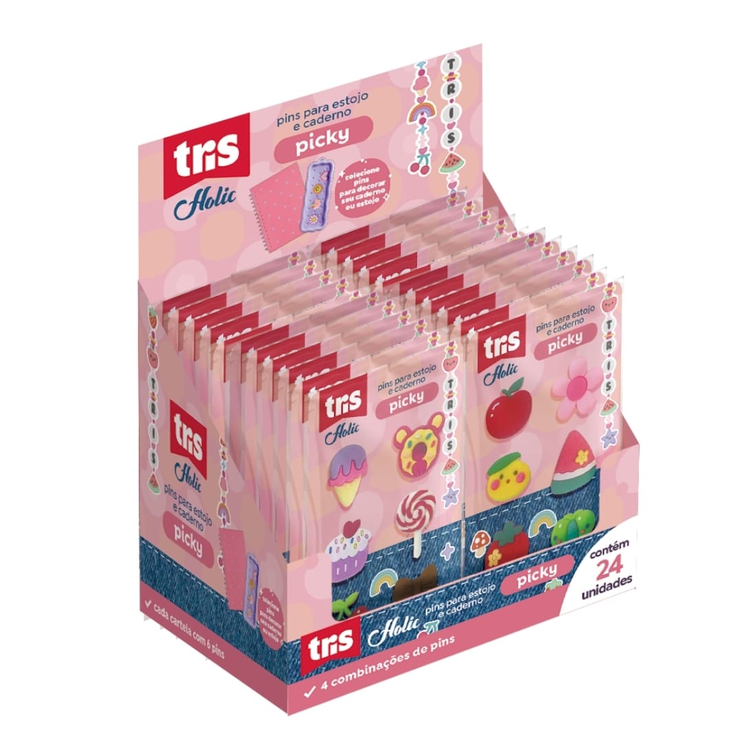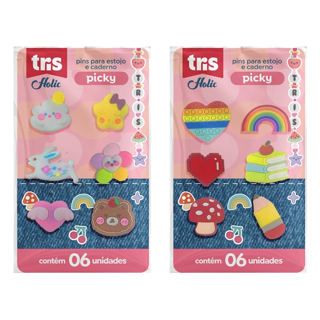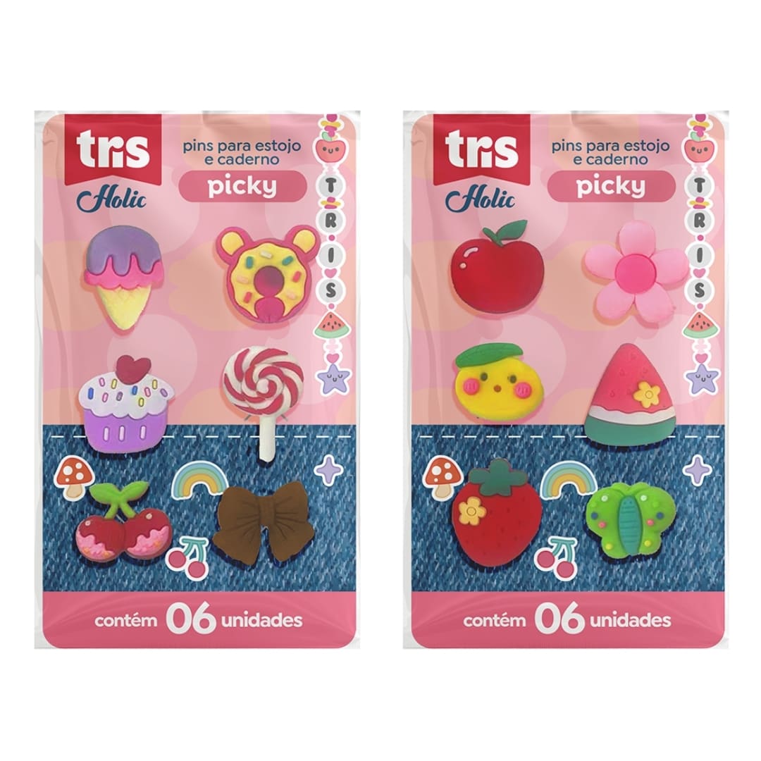 Em resumo, os pins da linha Picky Holic da Tris são acessórios colecionáveis e versáteis, pensados para dar um toque pessoal e criativo aos seus itens do dia a dia.