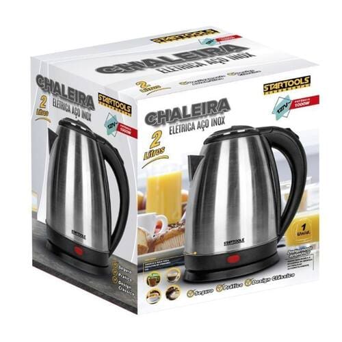 Chaleira Elétrica Inox 2 Litros Bivolt 1500W com Desligamento Automático e Tampa de Segurança – Startools, Fervedor Rápido de Água, Compacta e Resistente