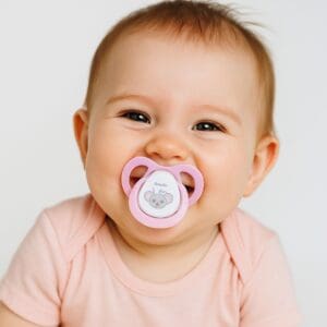 - Design Ortodôntico: O bico da chupeta é especialmente desenhado para se adaptar perfeitamente à anatomia da boca do bebê, promovendo o correto desenvolvimento da mandíbula e dos dentes. Isso ajuda a prevenir problemas de má oclusão no futuro, garantindo que o palato e a dentição se desenvolvam de forma natural e saudável.