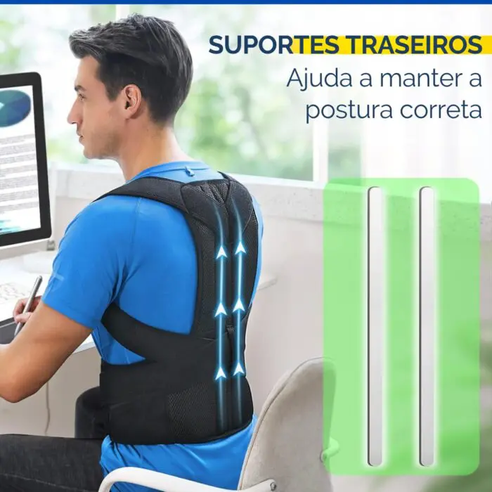 • Correção Postural Eficaz: Ajuda a alinhar os ombros, costas e coluna, promovendo uma postura mais ereta e elegante. Ideal para quem passa longas horas sentado, em pé ou realizando atividades que exigem esforço físico.