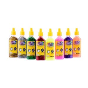 A Cola Glitter Acrilex é um produto utilizado para decoração e personalização de diversos materiais, como papel, madeira, cerâmica, EVA, e tecidos, proporcionando um efeito brilhante e colorido.