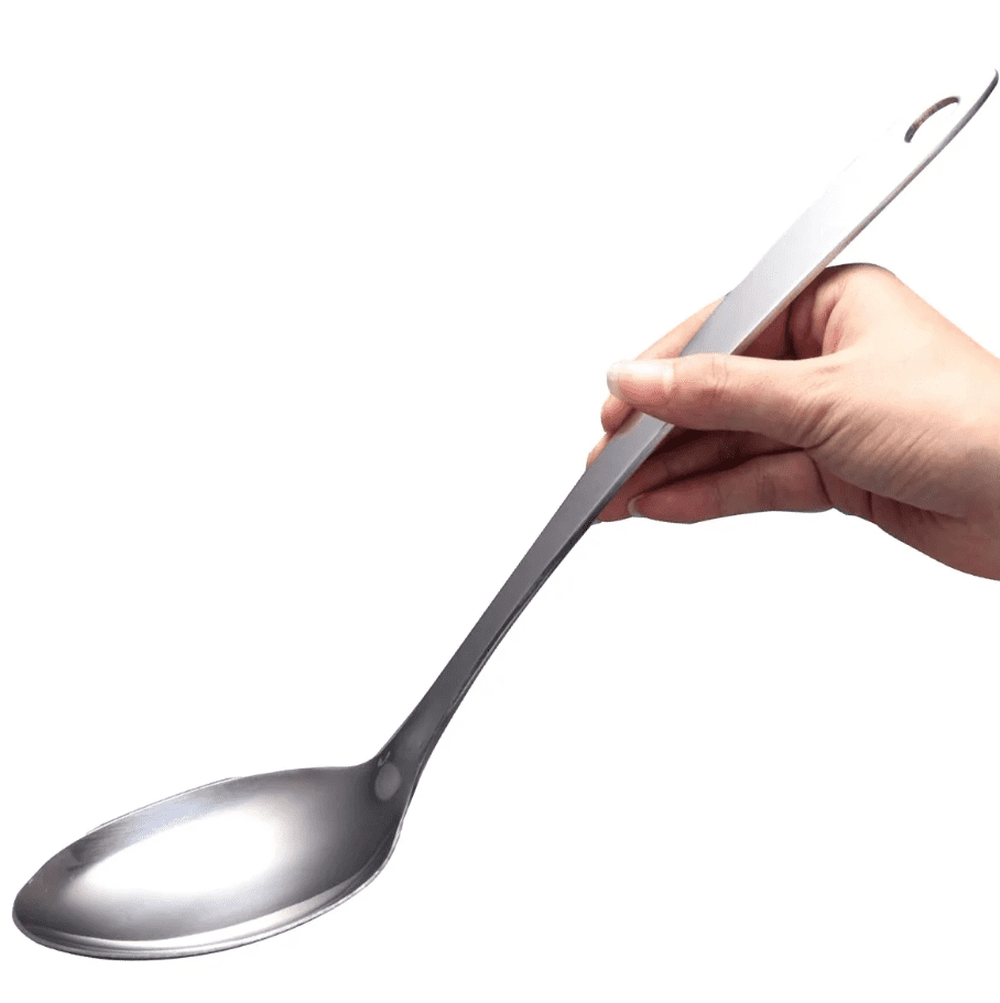 - Design Ergonômico: O cabo longo de 35,5cm proporciona maior segurança e conforto durante o manuseio, evitando o contato com alimentos quentes e facilitando o alcance em panelas e travessas profundas.