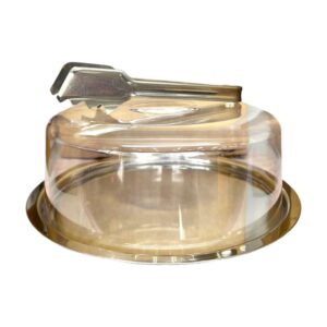 Acompanha a boleira uma tampa de acrílico transparente de alta qualidade. Esta tampa não só protege seus alimentos de poeira, insetos e ressecamento, mantendo-os frescos por mais tempo, como também permite a visualização do conteúdo, aguçando o apetite e facilitando a escolha. Seu design ergonômico facilita o manuseio, tornando o servir ainda mais prático e elegante.