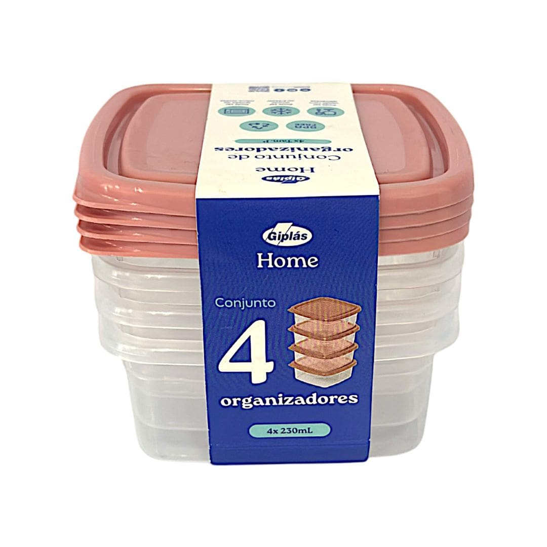 Conjunto C/ 4 Organizadores Quadrados Altos Home 625ml - Giplás R$ 7,99