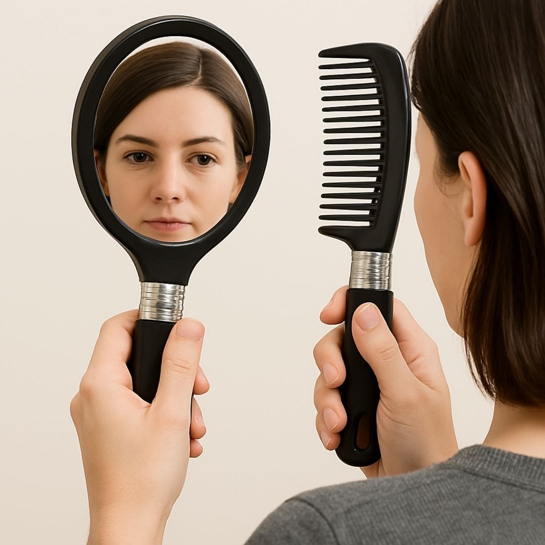 Conjunto Elite: Pente e Espelho de Mão – Elegância e Praticidade para Seu Dia a Dia