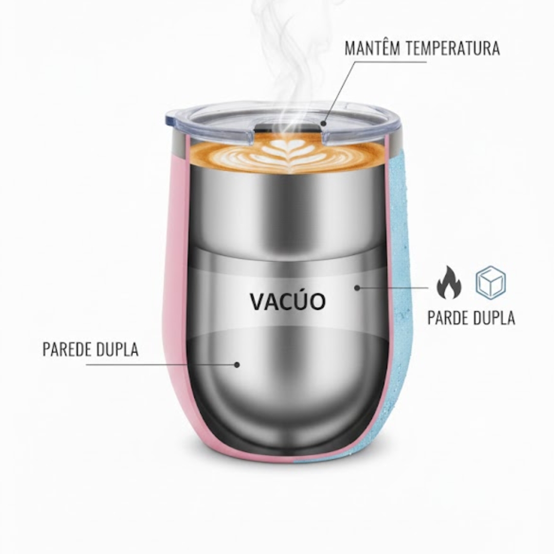 Isolamento Térmico: Ajuda a preservar a temperatura interna da bebida, seja ela quente ou gelada.