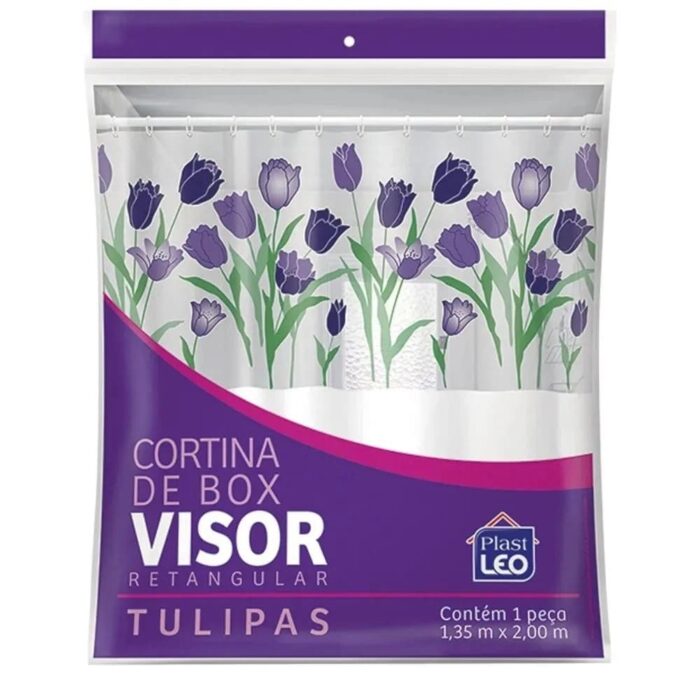 Cortina para Box de Banheiro com Visor Retangular Estampado 1,35×2,00m – Plast Leo