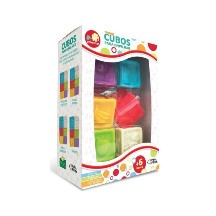 Os Cubos para Empilhar – Pais & Filhos são um brinquedo clássico e educativo, ideal para estimular o desenvolvimento dos bebês a partir dos 6 meses de idade.