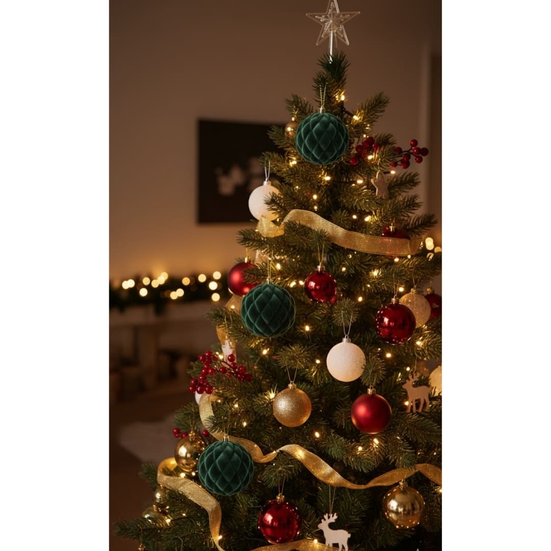 Com um diâmetro de 10 cm, esta bola tem o tamanho perfeito para ser harmonizada com bolas maiores e menores, criando um efeito de profundidade na árvore. O revestimento em veludo (modelo Kino) é ideal para decorações que buscam um estilo clássico, vintage ou cozy, contrastando maravilhosamente com o brilho dos pisca-piscas e dos demais enfeites de glitter. O veludo absorve a luz, dando um toque de cor rica e profunda.