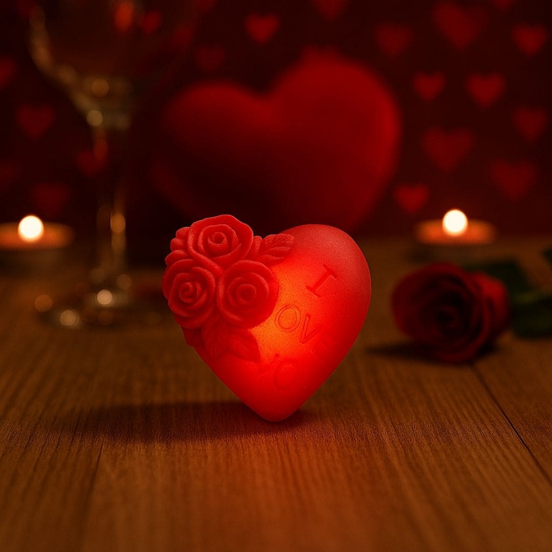 - Design Elegante: Formato clássico de coração com iluminação LED suave.