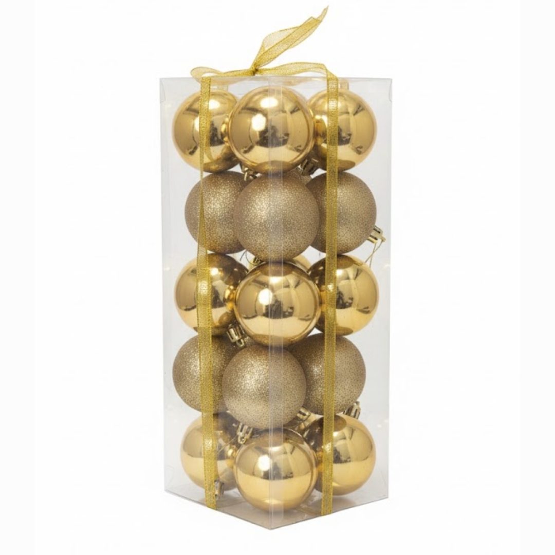 Este robusto Kit de Enfeites da Wincy contém 20 Bolas de Natal, ideal para quem deseja decorar árvores maiores ou criar guirlandas volumosas. O conjunto apresenta uma curadoria de bolas com dois acabamentos distintos, que se complementam para um efeito visual dinâmico: