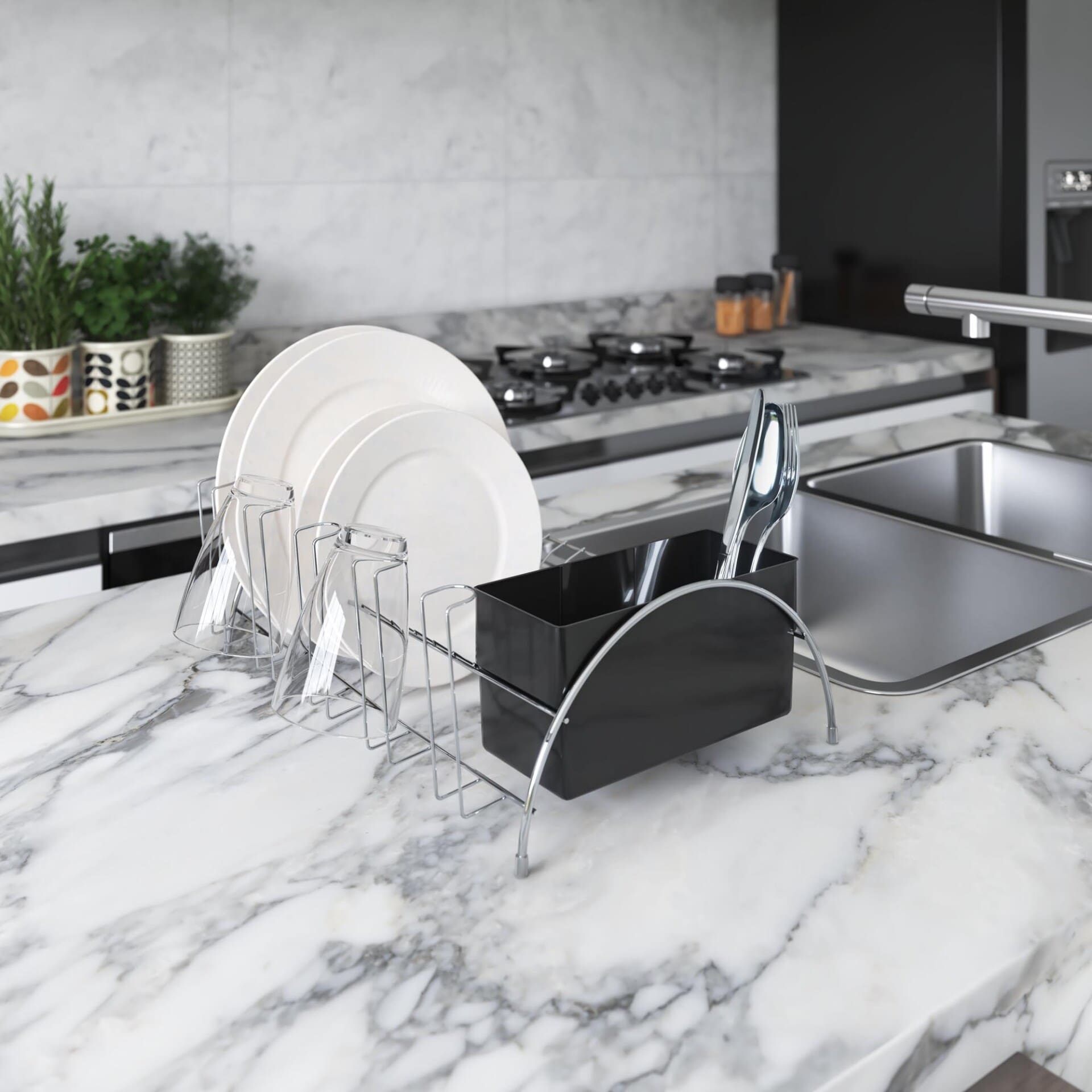 Escorredor de Louça em Arco de Aço com Porta Talheres de Plástico – Stolf