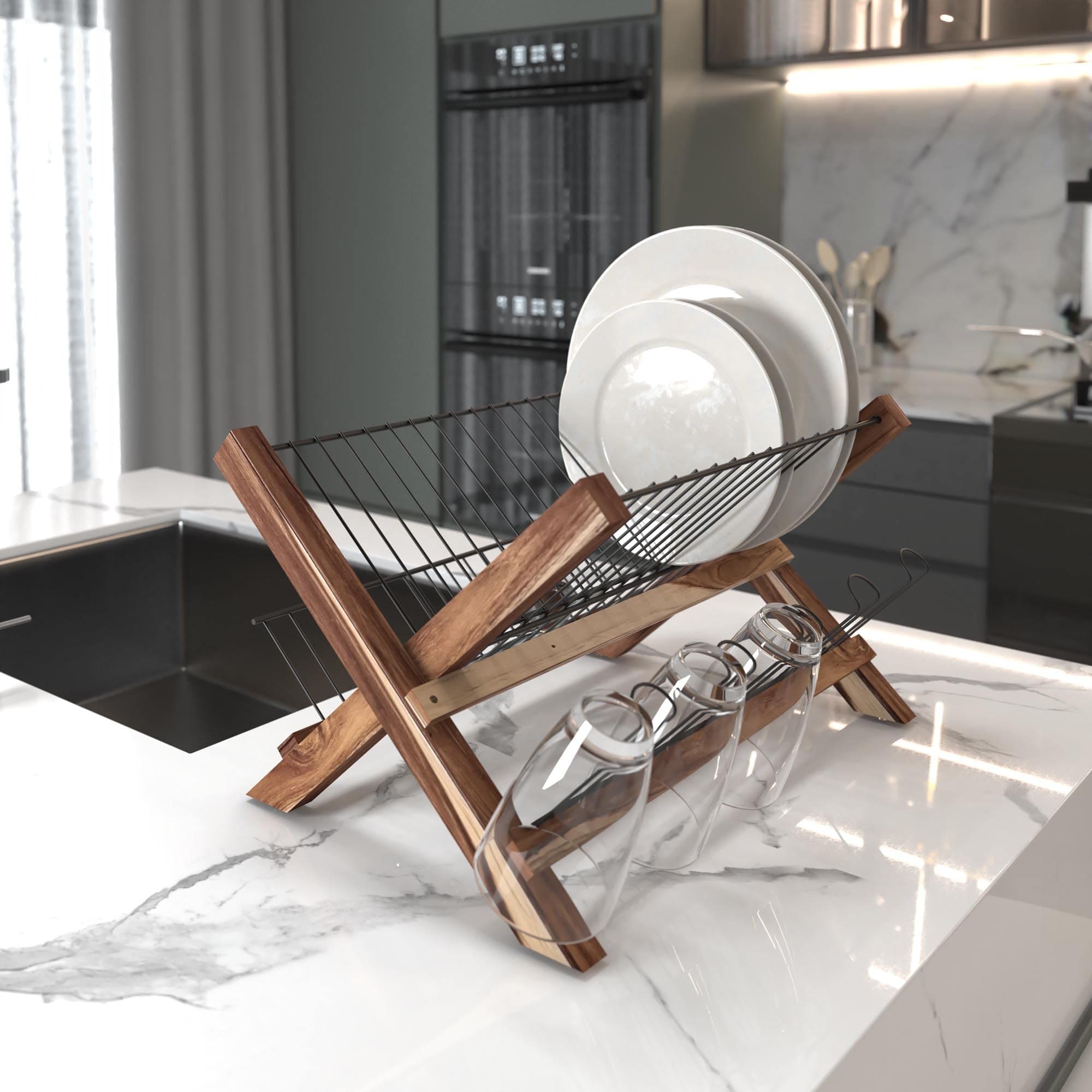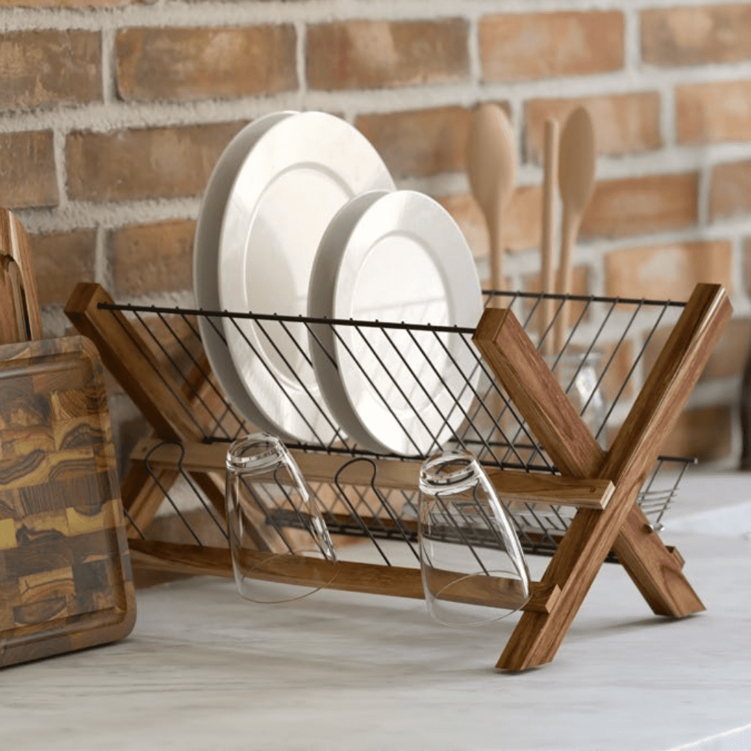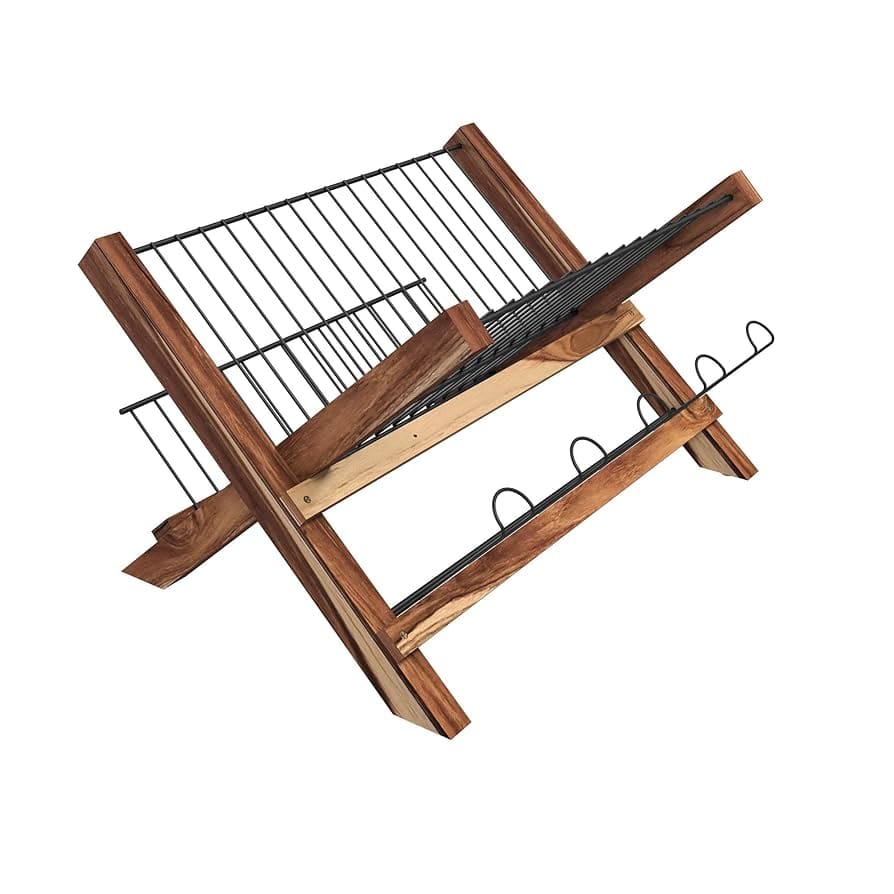 Escorredor Dobrável de Madeira e Aço Teca Black Linha Cozinha – Stolf