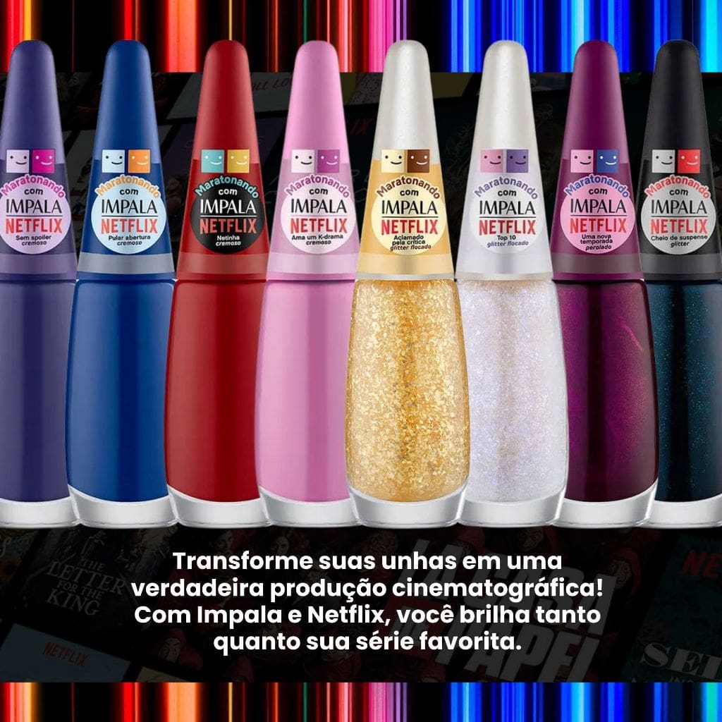 Sua fórmula de alta qualidade garante secagem rápida e longa duração, evitando lascas e mantendo suas unhas bonitas por mais tempo. Além disso, a aplicação é suave e fácil, permitindo que você crie looks incríveis sem esforço. Seja para um visual discreto ou para um toque de cor vibrante, o Esmalte Impala Maratonando Netflix é a pedida certa para expressar sua personalidade e paixão por séries.