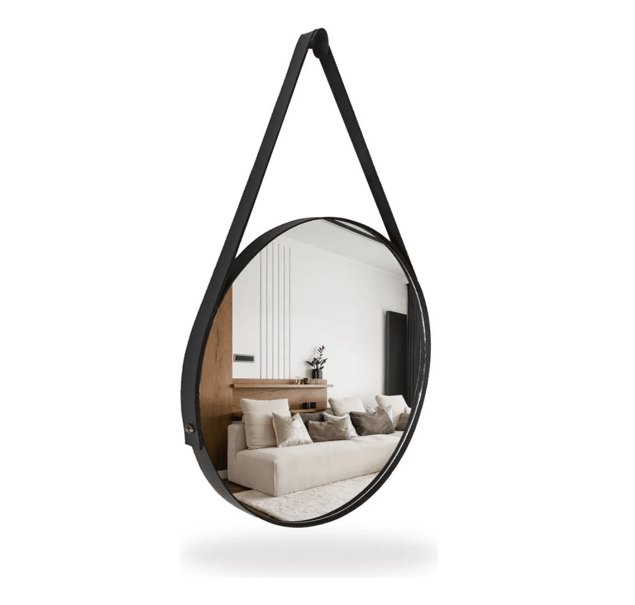 Com um diâmetro ideal de 60cm, o formato redondo clássico combinado com a moldura preta em alumínio de alta qualidade com pintura eletrostática confere um acabamento impecável e durável, resistente à umidade e corrosão. Acompanhado por uma elegante alça, frequentemente confeccionada em couro sintético de excelente acabamento na cor preta, este espelho oferece um toque de charme e originalidade, permitindo uma instalação suspensa prática e cheia de personalidade.