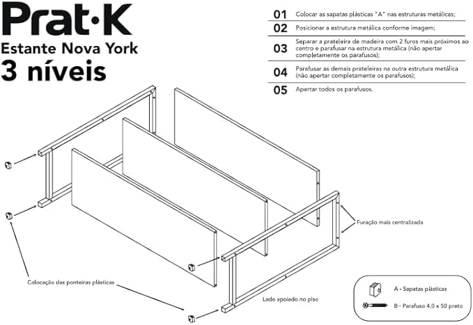 Montagem simples e rápida: A Estante 3 Níveis Nogueira (Nova York) da Prati-k foi projetada para uma montagem descomplicada, acompanhada de um manual de instruções claro e todas as ferragens necessárias. Em poucos minutos, você terá sua nova estante pronta para organizar e embelezar seu espaço.