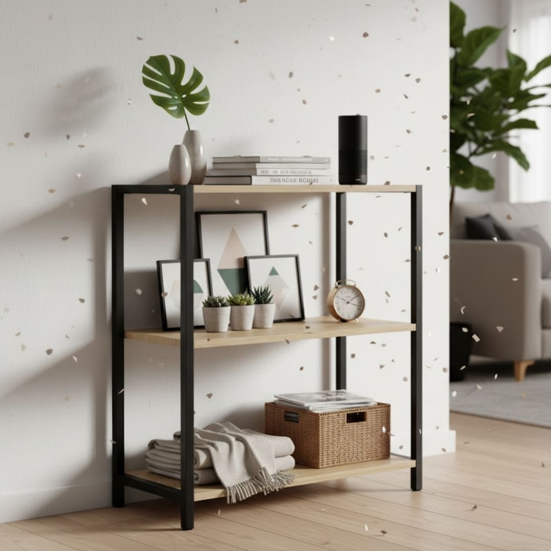 Com três amplos níveis, esta estante oferece espaço generoso para armazenar livros, objetos de decoração, plantas, caixas organizadoras e muito mais. Suas dimensões compactas de 64 cm de largura, 30 cm de profundidade e 72 cm de altura a tornam ideal para diversos cômodos, desde salas de estar e escritórios até quartos e halls de entrada.