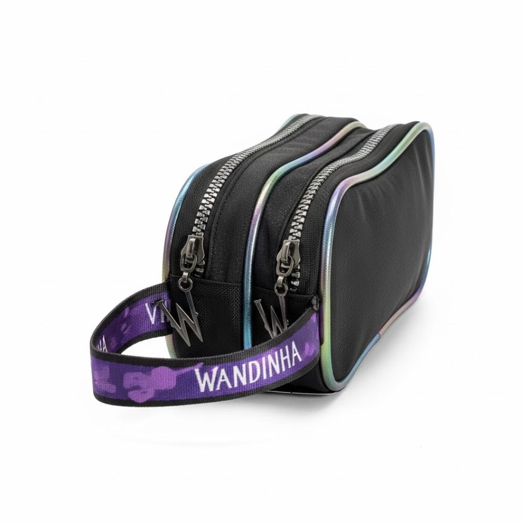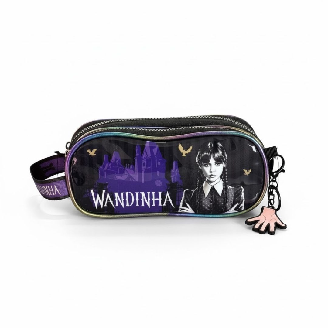 Garanta organização e estilo sombrio para o material escolar com o Estojo Duplo Oficial da Wandinha, um item indispensável para os fãs da série de sucesso da MGM.