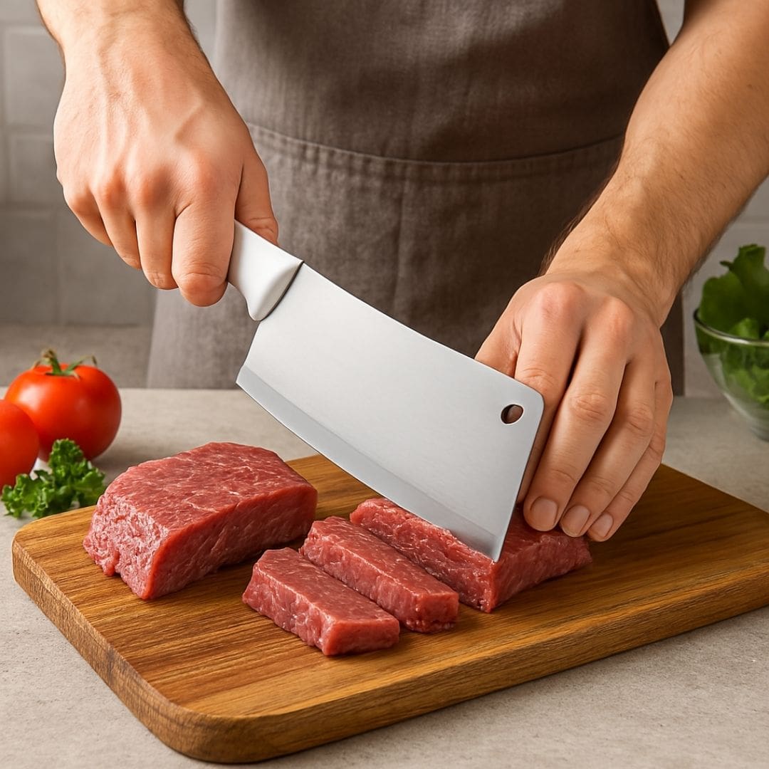 • Design Robusto e Equilibrado: O peso e o equilíbrio da faca são otimizados para proporcionar controle total durante o corte, facilitando o trabalho com peças maiores de carne, aves inteiras ou vegetais densos.
