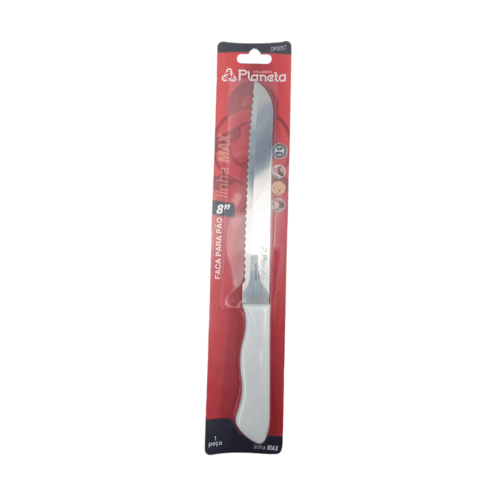 A faca para pão possui uma lâmina serrilhada que é ideal para cortar pães com cascas duras e interiores macios. A lâmina facilita o corte, preservando a integridade do alimento.