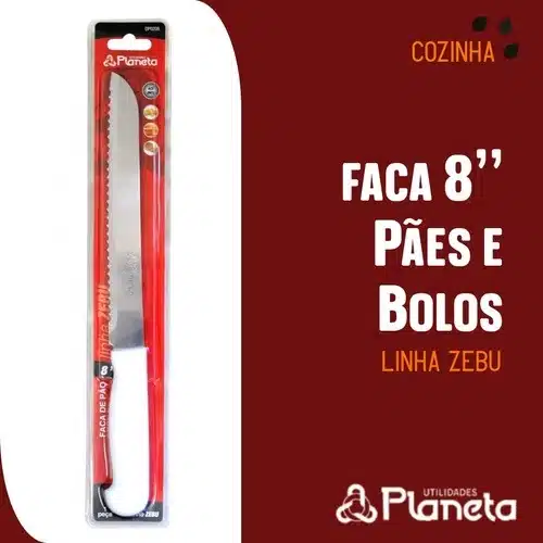 A Faca para Pão da marca Planeta Utilidades é projetada especificamente para cortar pães de maneira eficiente, sem amassar ou danificar a textura do pão.